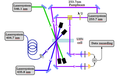 In our LWI experiment, we use a 4-level-scheme in mercury with a laser transition at 253.7 nm as described in [1]. For this scheme a strong driving laser at 435.8 nm, a weak driving laser at 546.1 nm and an incoherent repump at 404.7 nm are required.